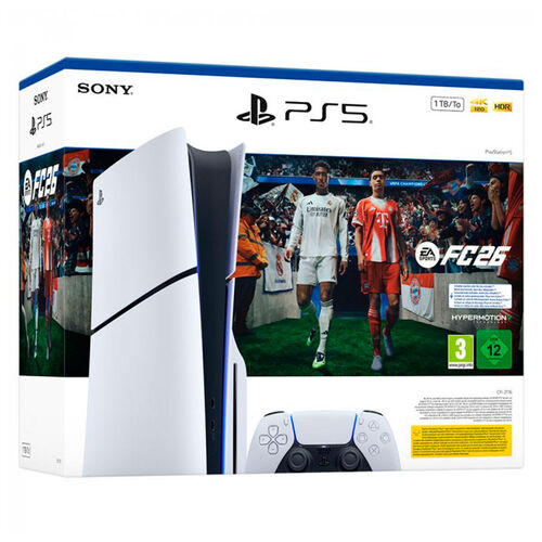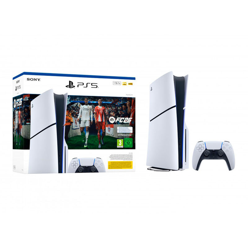 Descubre la nueva PlayStation 5 Slim Chassis E junto al esperado juego FC 26, una combinación perfecta para los verdaderos fanáticos del gaming y el fútbol. Esta versión renovada de la PS5 mantiene toda la potencia de la consola original, pero con un diseño más compacto, ligero y eficiente, ideal para cualquier espacio en tu hogar.