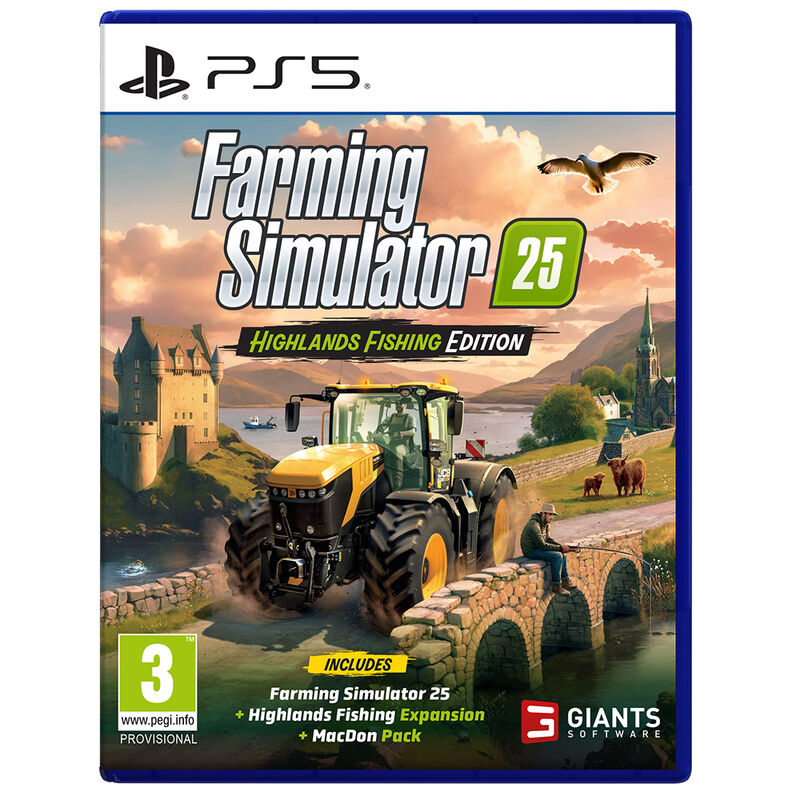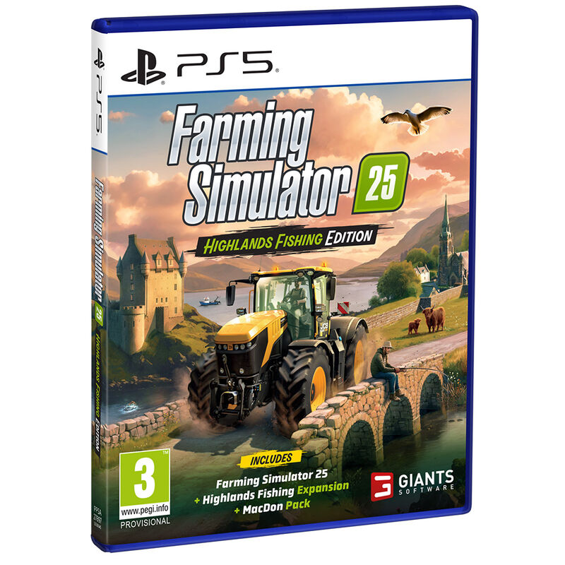 Farming Simulator 25: Highlands Fishing Edition incluye tanto el aclamado juego principal como la expansión Highlands Fishing. Disfruta de 26 cultivos, 4 mapas, más de 400 máquinas, más de 150 marcas auténticas y acuicultura además de agricultura, silvicultura y ganadería.