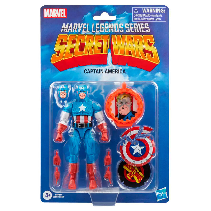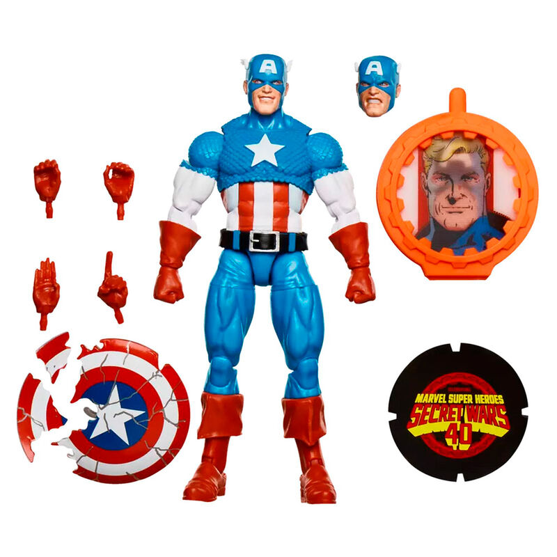Hasbro presenta, dentro de la colección Marvel Legends Series, la figura de Captain America. Mide 15 cm y está basada en la épica historia de los años 80 "Secret Wars". Contiene 1x cabeza alternativa, 2x pares de manos, 1x escudo, 1x escudo que se abre, 1x lámina lenticular para colocar en el escudo y 1x lámina alternativa para el escudo con el logotipo "Marvel Super Heroes Secret Wars 40". Colecciona el resto de las figuras de la serie y construye tu propio multiverso Marvel (se venden por separado).