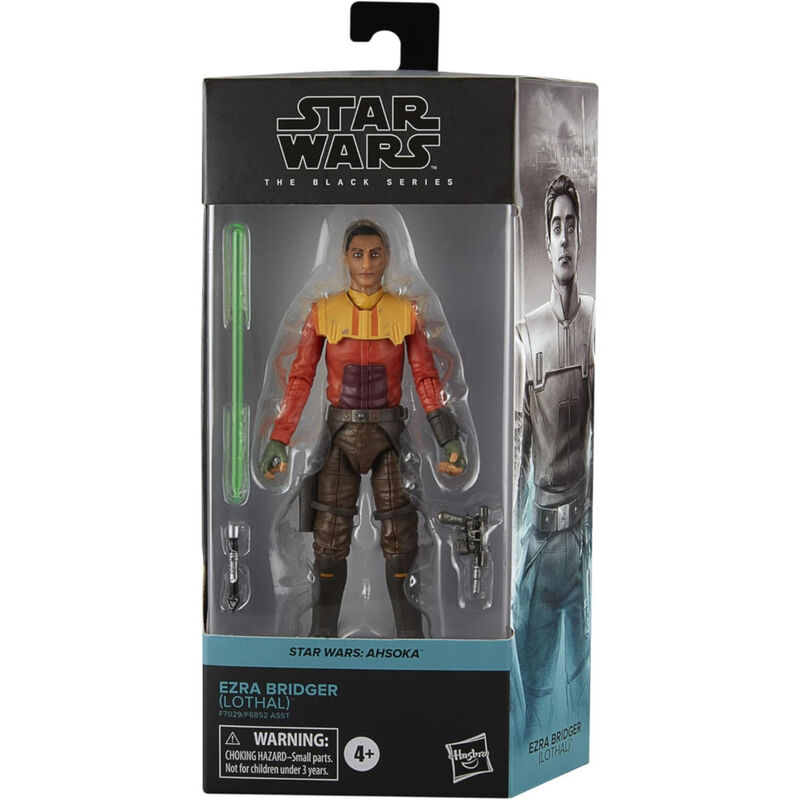 Hasbro presenta, dentro de la colección The Black Series, la figura de Ezra Bridger (Lothal). Mide 15 cm y está basada en el personaje de la serie "Star Wars: Ahsoka". Cuenta con detalles premium y múltiples puntos de articulación. Incluye 1x sable de luz y 1x bláster.