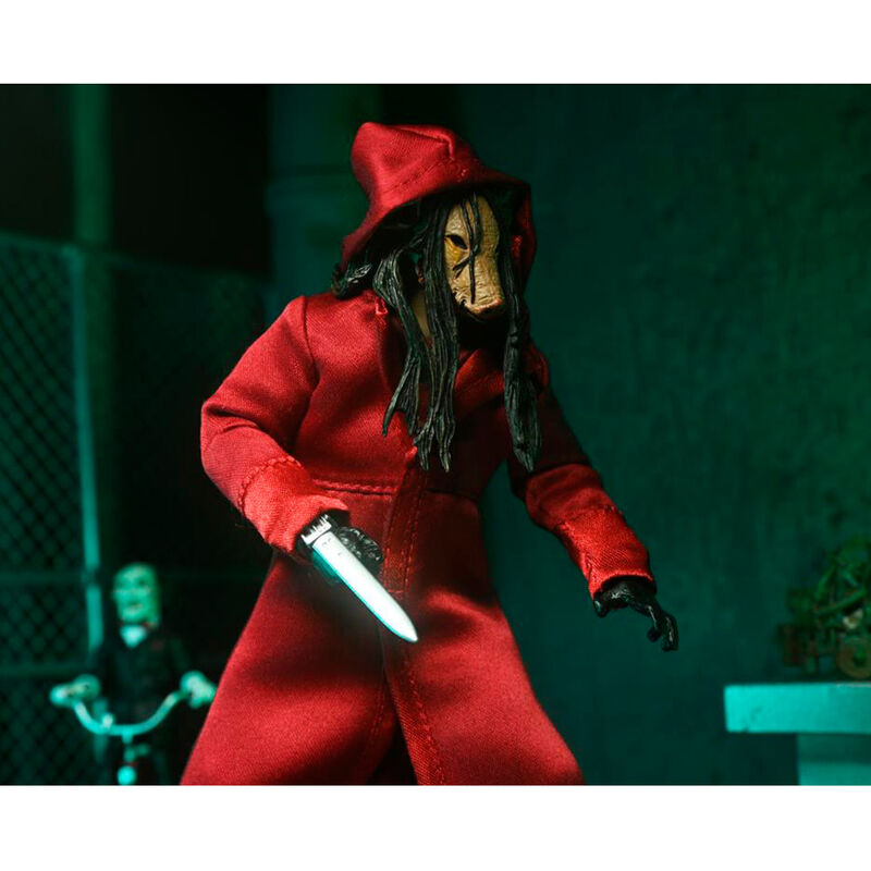 Neca presenta, dentro de la colección Scale Action, la figura de Ultimate Jigsaw Killer Red Robe. Está basada en el personaje de las películas de "Saw" y mide 18 cm. Contiene 1x cabeza extra, 1x cabeza con máscara de cerdo, 1x trampa, 1x grabadora, 1x cuchilla, 3x manos y Billy en triciclo. Se presenta en una caja con ventana. UNIDADES LIMITADAS.