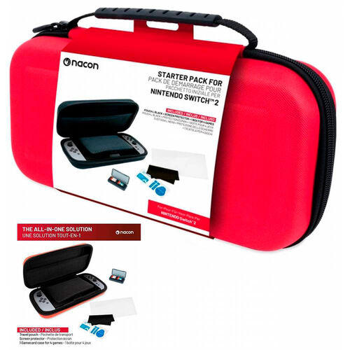 Compra la funda rígida en color rojo, el protector de pantalla y la caja de almacenamiento para las tarjetas del juego y disfruta de tu Nintendo Switch 2 con estos fantásticos accesorios.