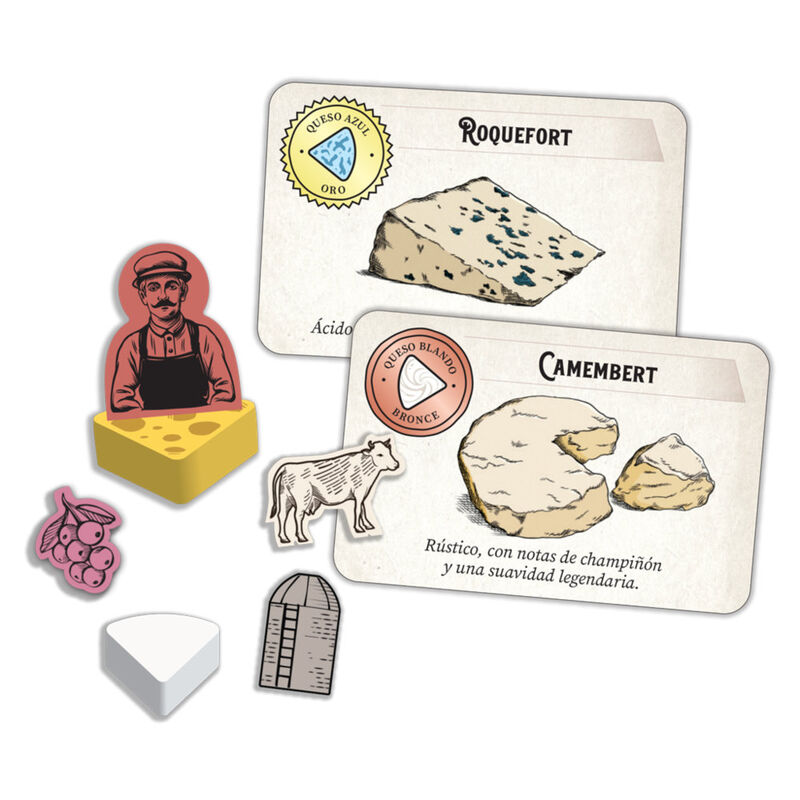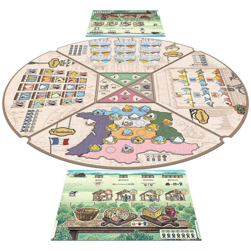 Cuando todos los participantes han terminado sus acciones, el tablero gira, el queso madura y cambia el cuadrante que tiene enfrente cada participante. Al final de la partida, obtienes puntos de prestigio por tu queso y por la gestión de los recursos de tu quesería. Gana quien haya obtenido más puntos de prestigio.