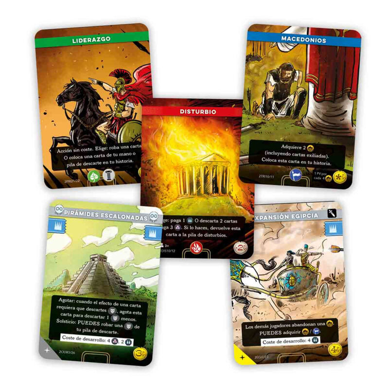 ¡Las civilizaciones mitológicas del pasado toman vida en tus manos! En Imperium: Legendarios gobernarás a artúricos, atlantes, egipcios, mauryanos, minoicos, olmecas, qin o utópicos y tratarás de transformar un pueblo joven en el imperio más próspero que haya visto el mundo antiguo. Para ello, irás mejorando tu baraja con cartas cada vez más poderosas, al tiempo que evitas los disturbios. Independiente pero combinable con Imperium: Clásicos, cada civilización tiene poderes únicos, con lo que hay muchas estrategias posibles a tu alcance. ¿Lograrás construir el imperio más próspero que haya visto el mundo?
