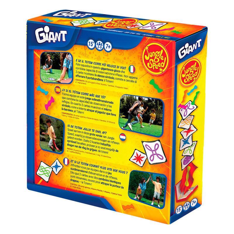 Forma equipo en este juego sobredimensionado que combina la capacidad de observación y los reflejos. En cuanto 2 cartas muestren el mismo símbolo, corre e intenta atrapar al jugador que lleva la bandera: ¡el Tótem!