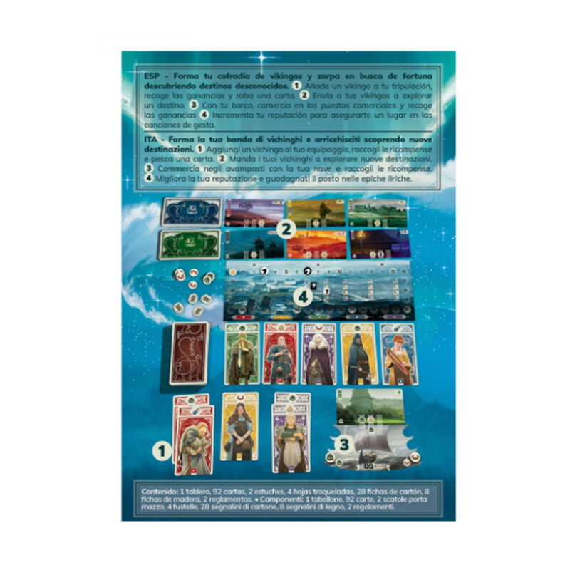 Recluta y lidera un grupo de vikingos para formar tu cofradía, haz fortuna enviándolos a descubrir nuevos territorios en tu barco, establece rutas comerciales y, en algunos casos, asiéntate definitivamente. Al mismo tiempo, ¡cultiva tu reputación y haz que tu nombre resuene en cantos heroicos para ganar aún más puntos de victoria!