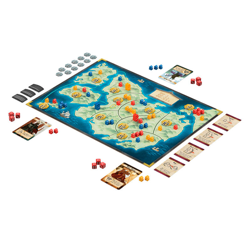 Aspirad a la supremacía disputando la conquista de los once castillos del territorio. Tres dados determinan dónde desplegáis vuestros Soldados y las cartas de Táctica os permiten haceros con el control del curso de la guerra. Para dominar la partida, necesitaréis una buena combinación de sabiduría y suerte.