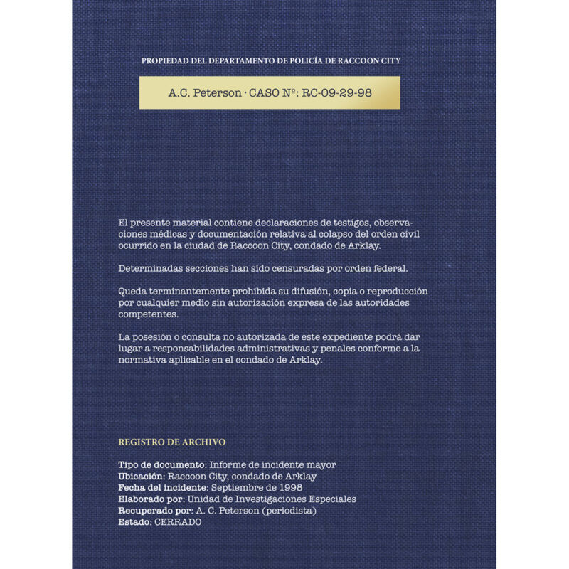 A.C. Peterson, periodista e investigador, se ha propuesto sacar de las sombras auna corporación que ha estado usando Raccoon City como base de operacionespara todo tipo de oscuros proyectos y experimentos poco éticos. Con pruebas sobre la mesa y el testimonio de extrabajadores, policías y otros implicados en esta viscosa trama, Umbrella quedará por fin expuesta tras haber estado operandocon impunidad y total opacidad.