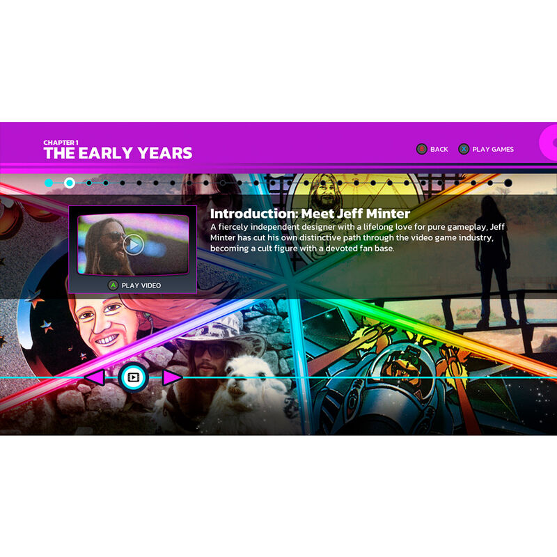 Gridrunner, Revenge of the Mutant Camels, Tempest 2000, Llamatron... En el ámbito de los videojuegos británicos de la década de los 80 y 90, nadie hacía juegos como Jeff Minter. Ahora, en un nuevo documental interactivo de Digital Eclipse, puedes jugar a la historia de uno de los desarrolladores más frikis y gamberros que ha habido nunca: un apasionado de los disparos y las ovejas, los láseres y las llamas.