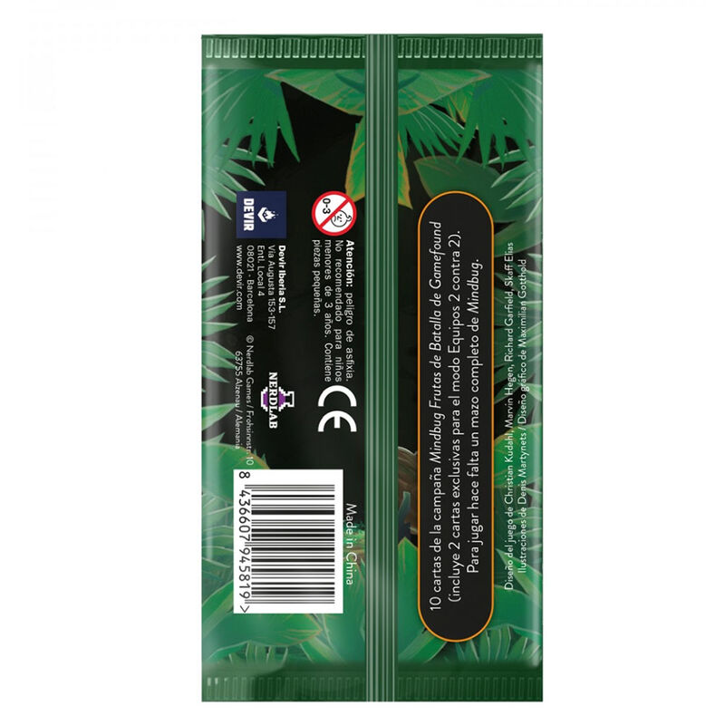 ¡Amplía tus sets de Mindbug Frutas de Batalla con este sobre de expansión que incluye 10 cartas exclusivas! Añade a tu equipo de criaturas al Remolachador, al Monstruo de cinco especias, la Shakespera o al Mangolorean. Tal como ocurre con las cartas del set Frutas de Batalla, estas nuevas criaturas interactúan con la Octonita, un valioso recurso que sirve para activar poderosas habilidades. Este paquete de cartas adicionales también incluye 2 cartas para el modo equipos 2 contra 2: Abrazo de hielo y fuego y Duelo frutal.