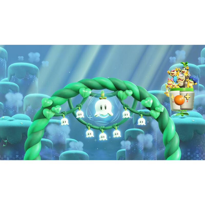 ¡Estela y Destello también se unen a la diversión! ¡Estela aterriza en el Reino Flor! Puedes elegirla como personaje en tu aventura para derrotar a Bowser Castillo, y también para seguirles la pista a los esbirros de Bowser o disfrutar de las atracciones y desafíos del Parque Belabel.Si te apetece compañía, otra persona puede unirse a la partida encarnando a un Destello compañero que, además de ser invulnerable, puede flotar por la pantalla para recoger monedas o derrotar a los enemigos. ¡Hasta es posible controlarlo mediante el modo ratón de los mandos Joy-Con 2!