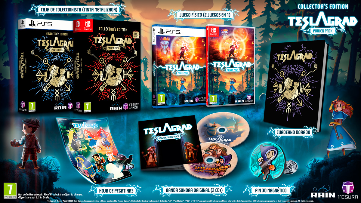 Teslagrad Remastered (NSW): inglés, español, francés, alemán, italiano, neerlandés, noruego, sueco, polaco, portugués (Brasil), portugués (Portugal), ruso, turco, chino (simplificado), chino (tradicional). La versión de PS5 añade japonés y coreano.
