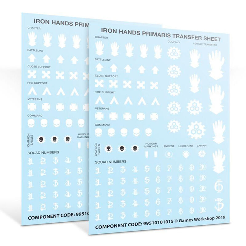 Demuestra tu lealtad a los hijos de Gorgona con este conjunto de mejoras y calcomanías para tus Primaris Space Marines. Puede usarse para personalizar una variedad de escuadras con iconografía y detalles específicos del Capítulo de los Iron Hands.