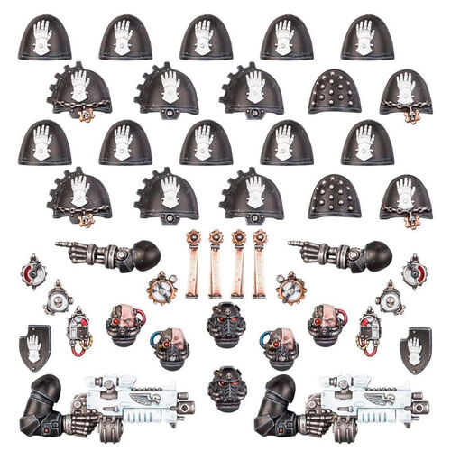 – 5 hombreras de servoarmadura Mk X de los Iron Hands (diseñadas para usarse con Hellblasters/Intercessors)